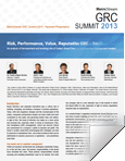 Amidst Big Data challenges, cyber threats, global supply chain disruptions, market volatility, and complex government regulations, the challenge of building a GRC-focused culture is daunting. We have to commit to this vision, and take proactive measures towards fulfilling it in a sustainable, methodical, analytical, and proactive way. Doing so will allow us to create more enduring value for our stakeholders.