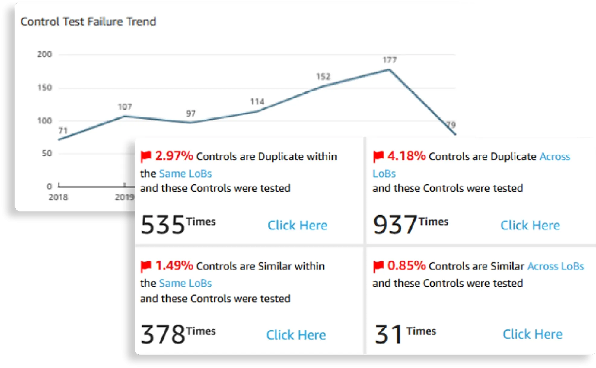 Leverage AI capabilities to quickly identify business units and processes with missing controls and less control coverage, control testing discrepancies, and a complete list of duplicates, similar, and orphan controls. Improve control test planning and identify and remediate patterns of over and under-testing of controls. Enhance the processes for scheduling control tests and conducting assessments based on clusters of issues, control test coverage, historical control test results, and organizational risk profile.