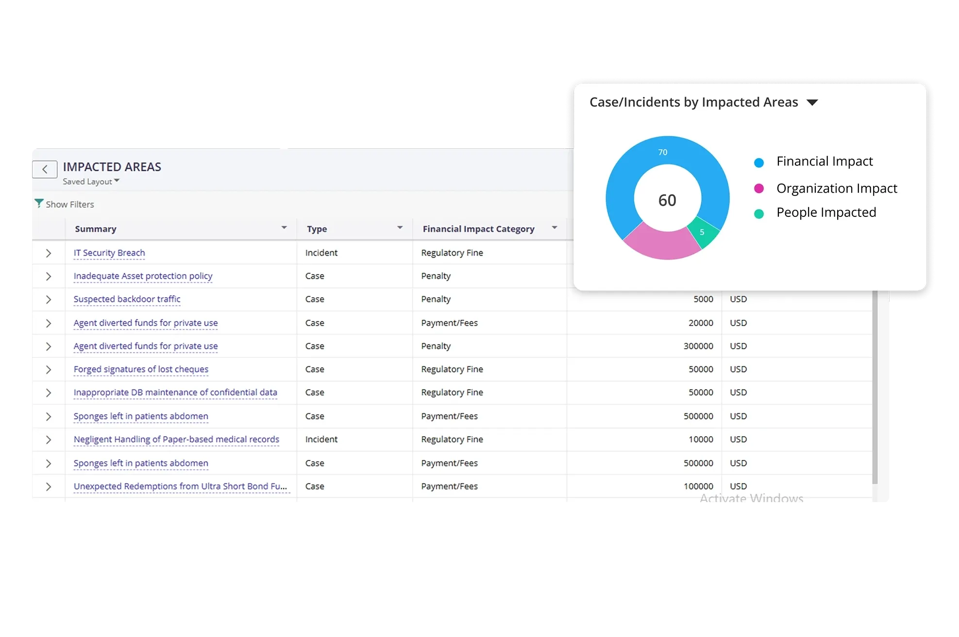 MetricStream Case and Incident Management software, enables you to establish and follow consistent procedures for case and incident planning and administration, recording, triaging, routing, investigating, tracking, and closure. You can report cases from multiple sources, such as emails, hotlines, and intranet portals, with the option of anonymity. Cases/incidents can be aligned to organizations, business processes, controls, risks, policies, and regulations to identify compliance or regulatory risk.