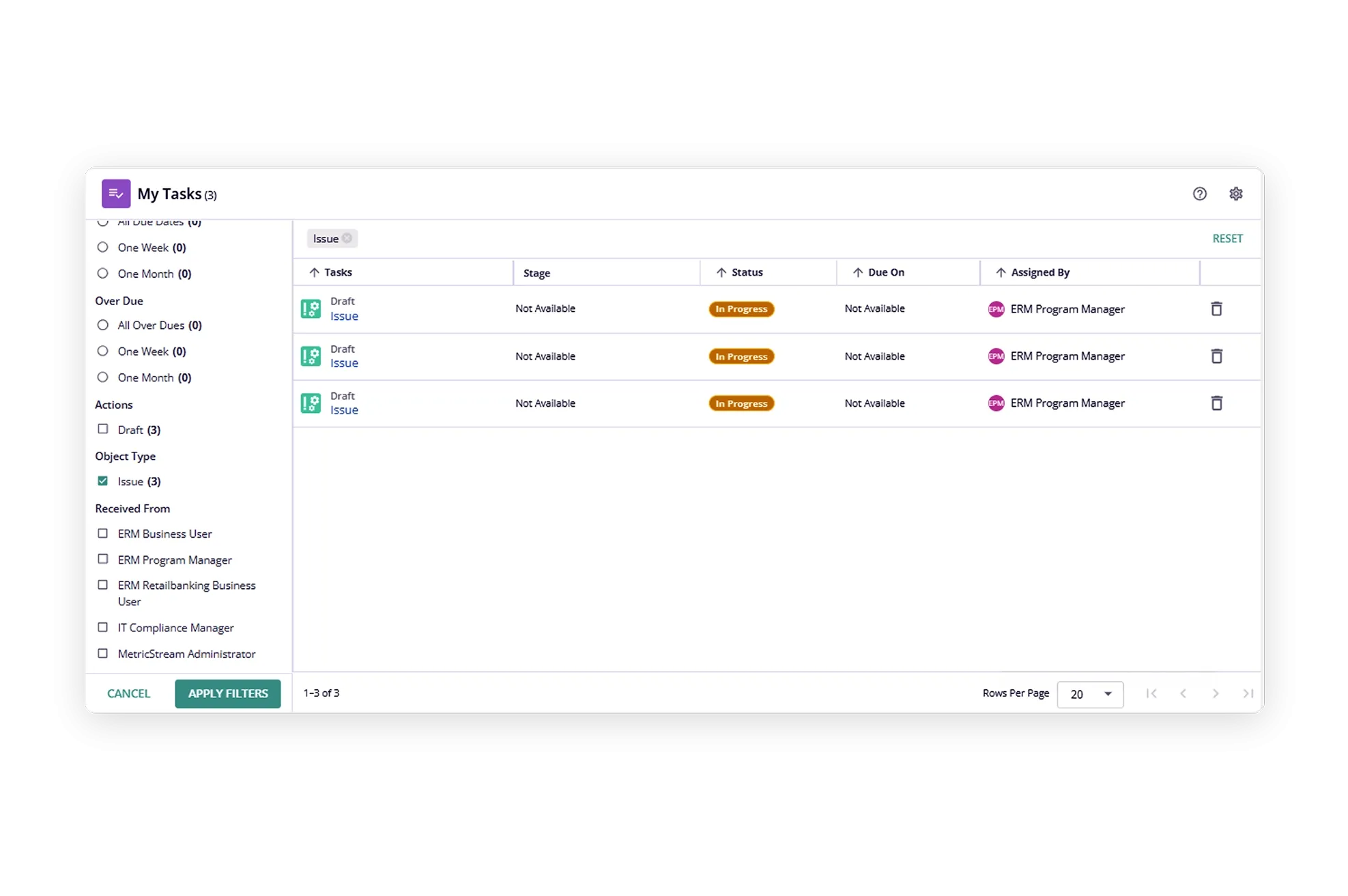 MetricStream Issue and Remediation Management provides a streamlined and integrated approach to issue and remediation management across risk, compliance, audit, cyber risk, ESG, and third-party risk management programs. By deploying a single system for enterprise-wide issue and remediation management processes, organizations can eliminate duplication of issues and expedite issue remediation.